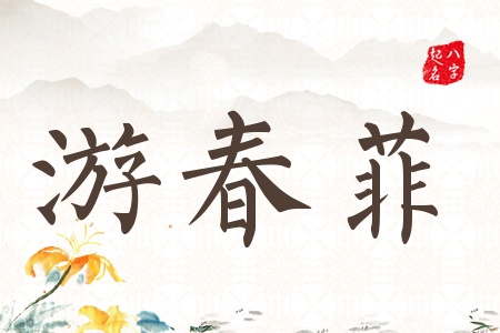 繁体:游春菲 拼音:yóu chūn fēi,fěi 康熙笔划:13 9 14 字意五行:水金木