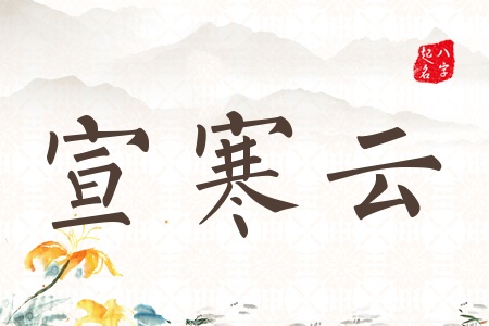繁体:宣寒云 拼音:xuān hán yún 康熙笔划:9 12 12 字意五行:金水水